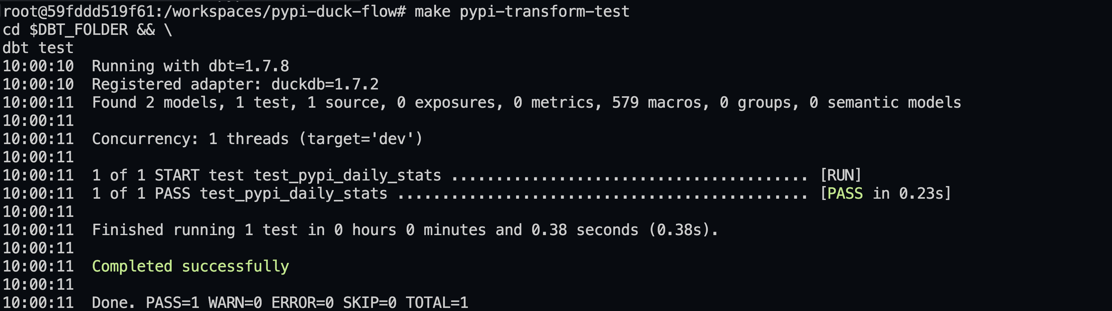 This blog has highlighted the dbt-duckdb adapter's contributions, showcasing it as more than a new dbt destination. It introduces a revitalized developer experience, enabling local prototyping, cloud-independent unit testing, and smooth transitions to cloud deployments with MotherDuck. Up next in this series, we'll breathe life into our PyPi dataset by creating a dashboard.