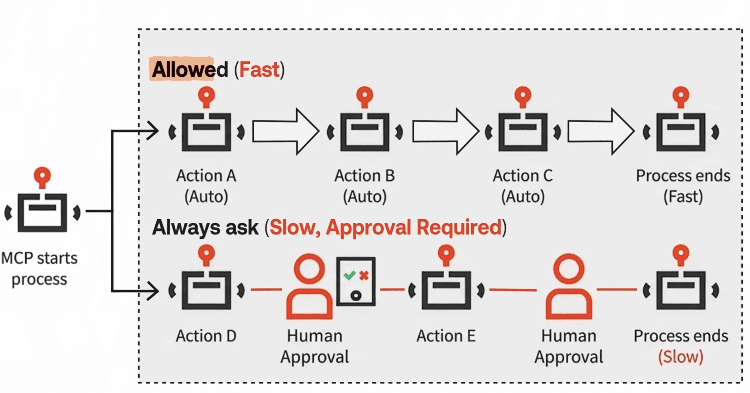 One more thing worth understanding: when an MCP server takes actions, your AI client typically lets you choose between allowing actions automatically (faster, no interruption) or always asking for approval before each action (slower, but you stay in control).