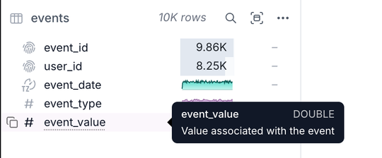 - Column Comments added to the Table Summary: In the Table Summary, users can now hover over any column name to view its comments alongside the column name and type