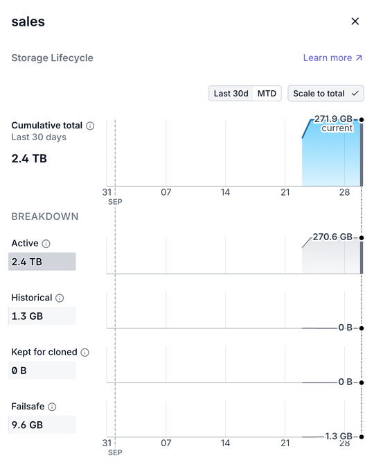 MD_INFORMATION_SCHEMA: Organization admins can now access up to 30 days of historical storage data using theSTORAGE_INFO_HISTORYview in theMD_INFORMATION_SCHEMA. Each record includes aresult_tstimestamp showing when the storage metrics were calculated.